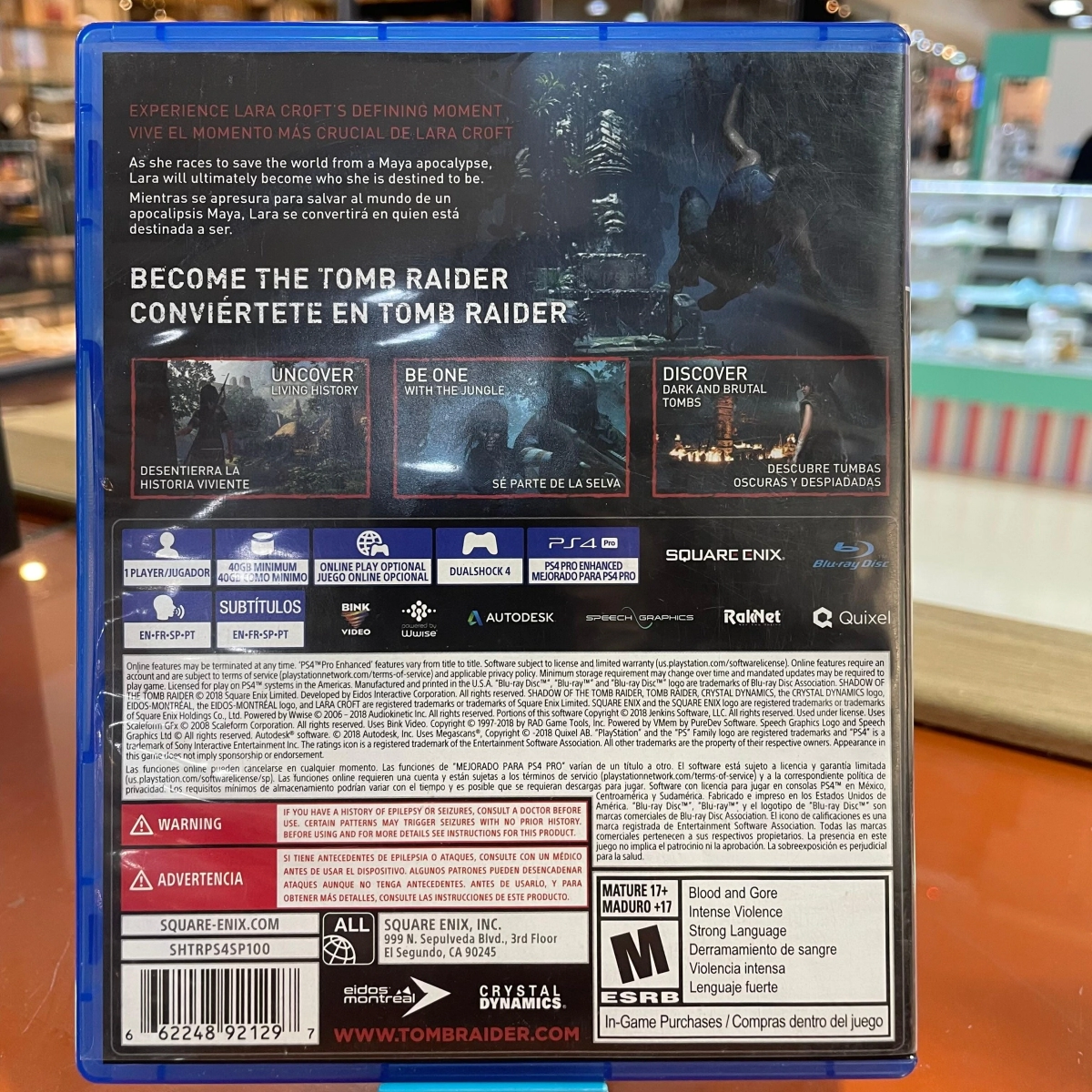 Shadow of the Tomb Raider es un videojuego de acción y aventura desarrollado por Eidos Montréal y distribuido por Square Enix, para las plataformas PlayStation 4, Xbox One y Microsoft Windows.?