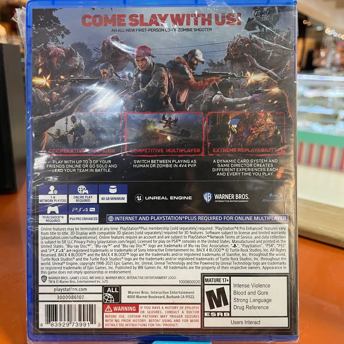 Back 4 Blood es un próximo juego de disparos en primera persona multijugador desarrollado por Turtle Rock Studios y publicado por Warner Bros. Interactive Entertainment. Está previsto que se lance el 12 de octubre de 2021 para Windows, PlayStation 4, PlayStation 5, Xbox One y Xbox Series X / S. Wikipedia (Inglés)