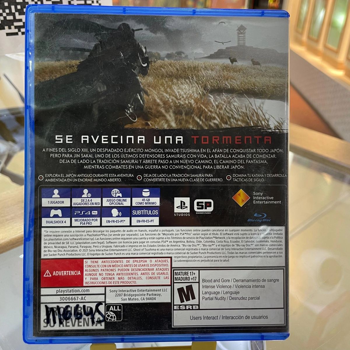 Ghost of Tsushima es un videojuego de acción-aventura desarrollado por Sucker Punch Productions y publicado por Sony Interactive Entertainment para PlayStation 4 y PlayStation 5. Wikipedia