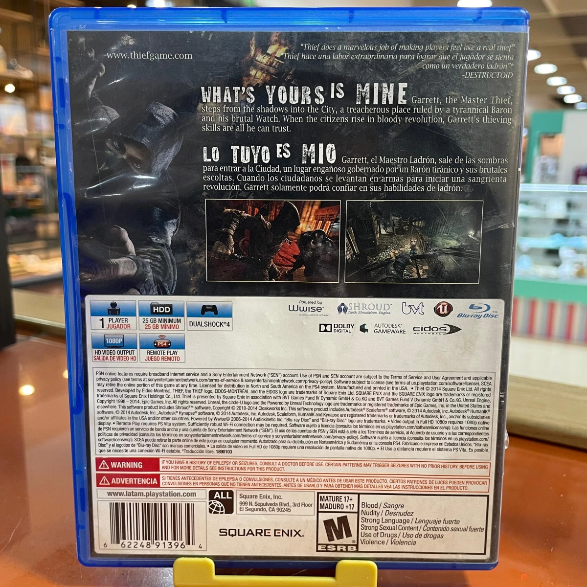 Thief es un videojuego de sigilo desarrollado por la empresa Eidos Montréal y distribuido por Square Enix. Fue lanzado el 25 de febrero de 2014 en América del norte, el 27 de febrero de 2014 en Australia y el 28 de febrero de 2014 en Europa para Microsoft Windows, Xbox 360, Xbox One, PlayStation 3 y PlayStation 4. Wikipedia
